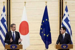ΠερισσότεραΟ Πρωθυπουργός Κυριάκος Μητσοτάκης συναντήθηκε με τον Ιάπωνα ομόλογό του Fumio Kishida, στην πρωθυπουργική κατοικία στο Τόκιο. Οι δύο ηγέτες υπέγραψαν Κοινή Δήλωση Στρατηγικής Συνεργασίας Ελλάδας – Ιαπωνίας, η οποία…