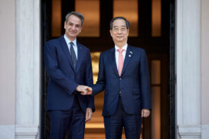 ΠερισσότεραΟ Πρωθυπουργός Κυριάκος Μητσοτάκης συναντήθηκε το μεσημέρι στο Μέγαρο Μαξίμου με τον Πρωθυπουργό της Δημοκρατίας της Κορέας, Han Duck-soo, ο οποίος πραγματοποιεί επίσημη επίσκεψη στην Ελλάδα. Ακολούθησαν συνομιλίες των διευρυμένων…