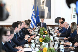 Περισσότερα«Συνεδριάζουμε σήμερα σε μία πολύ δύσκολη συγκυρία, κατά την οποία στην ευρύτερη γειτονιά μας απλώνονται πολύ μεγάλοι κίνδυνοι», ανέφερε ο πρωθυπουργός Κυριάκος Μητσοτάκης ξεκινώντας την εισήγησή του κατά τη…