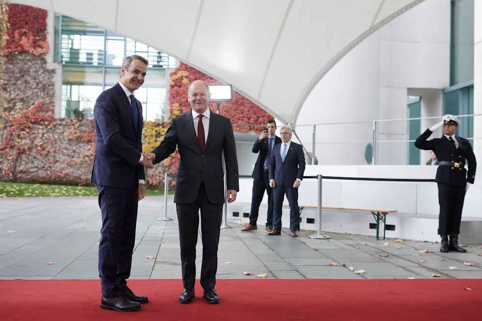 Συνάντηση του Πρωθυπουργού Κυριάκου Μητσοτάκη με τον Καγκελάριο της Γερμανίας Olaf Scholz