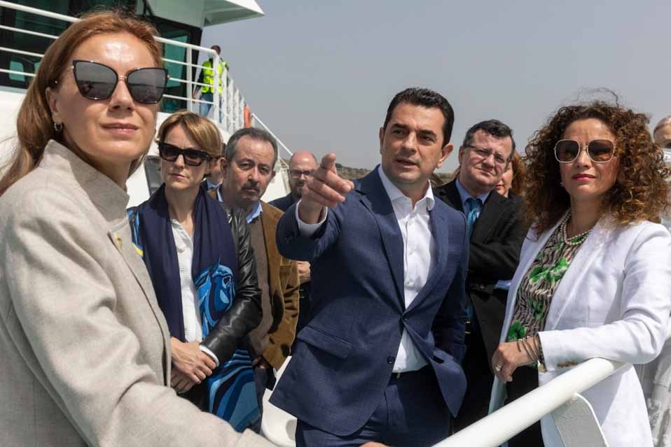 Ακολούθησε ξενάγηση στις εγκαταστάσεις της Ρεβυθούσας από τη Διευθύνουσα Σύμβουλο του ΔΕΣΦΑ, Maria Rita Galli, η οποία ενημέρωσε την Επίτροπο Ενέργειας για τη σημασία που έχει ο τερματικός σταθμός για την ενεργειακή ασφάλεια της χώρας.