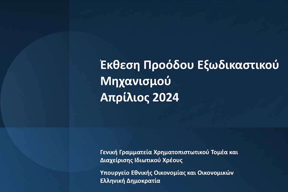 Επισυνάπτεται η μηνιαία έκθεση προόδου Εξωδικαστικού Απριλίου 2024 και τα στοιχεία διμερών ρυθμίσεων Μαρτίου 2024
